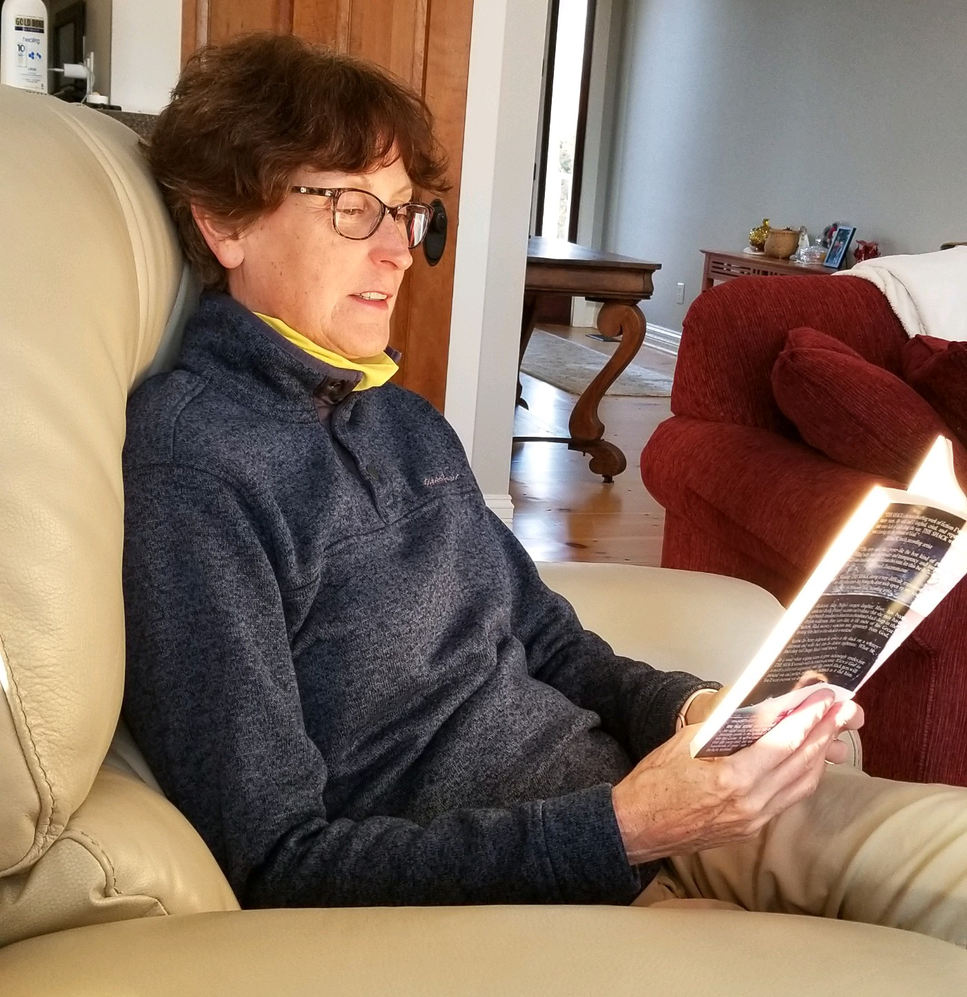 “I have to have adequate light. So if I’m reading from bed, I have to have a headlamp so the light is shining directly on what I’m reading.” – Libby Ford